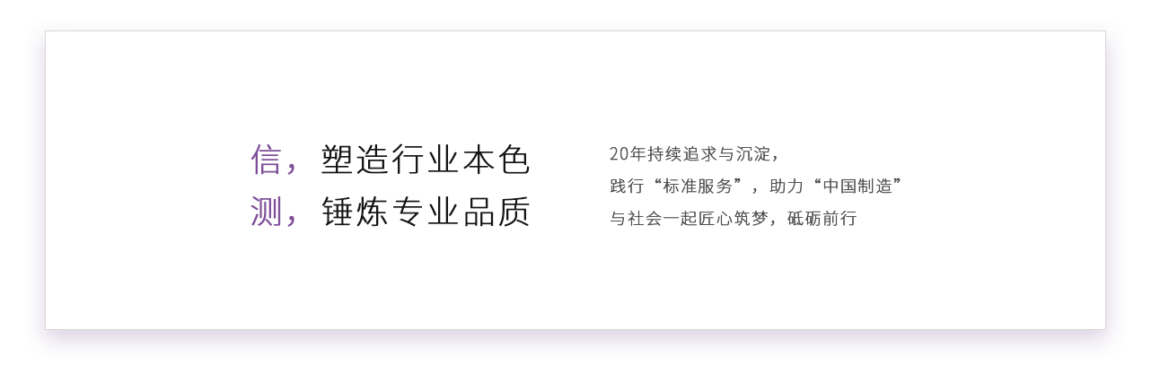 信測標準擁有多項專利技術和軟件著作權(quán),先后獲得“國家級高新技術企業(yè)”、“廣東省中小企業(yè)公共技術服務示范平臺”、“江蘇省生產(chǎn)性服務業(yè)領軍企業(yè)”、“廣東省名牌企業(yè)”、“深圳市生產(chǎn)性服務業(yè)公共服務平臺”等稱號。公司秉承“立信、善測”的經(jīng)營理念,致力于通過卓越的服務,幫助客戶提高研發(fā)和創(chuàng)新水平,提升產(chǎn)品質(zhì)量,創(chuàng)造美好生活。